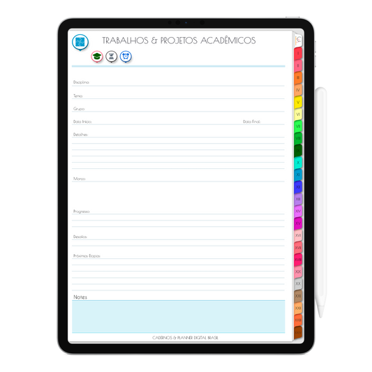 Caderno Digital Colors 24 Matérias Jóia Rara • Para iPad e Tablet Android • Download instantâneo