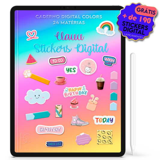 Caderno Digital Colors 24 Matérias Feminilidade • Para iPad e Tablet Android • Download instantâneo