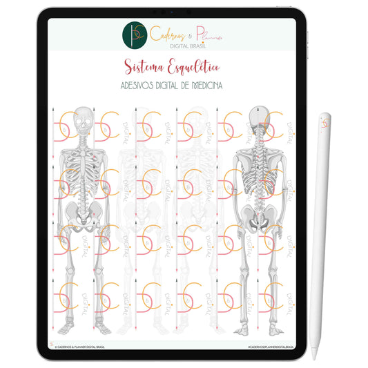 Adesivos Stickers Digital Study Medicina - Sistema Locomotor Esquelético no Corpo Feminino • iPad Tablet • Download instantâneo • 100% Sustentável