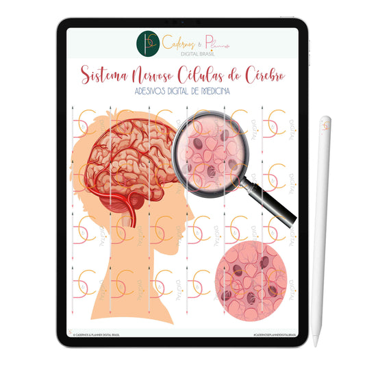 Adesivos Stickers Digital Study Medicina - Sistema Nervoso Células e Neurônios do Cérebro • iPad Tablet • Download instantâneo • 100% Sustentável