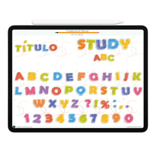 Stickers Títulos Bonitos Study ABC Adesivos Digital Tipografia • iPad Tablet • Download instantâneo • Sustentável