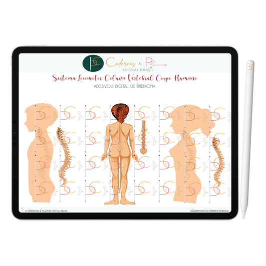 Adesivos Stickers Digital Study Medicina - Sistema Locomotor Anatomia Coluna Vertebral • iPad Tablet • Download instantâneo • 100% Sustentável