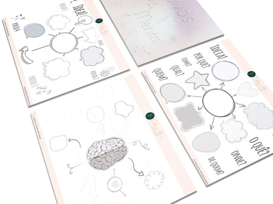 Adesivos Stickers Digital Mapa Mental Cinza Neutro Céu Noturno • iPad Tablet • Download instantâneo • 100% Sustentável