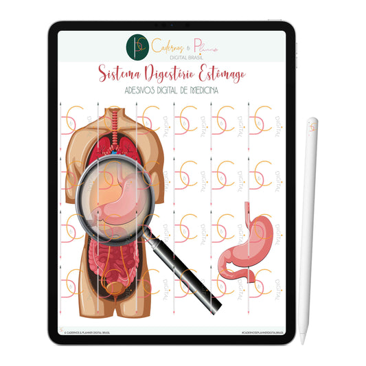 Adesivos Stickers Digital Study Medicina - Sistema Digestório • iPad Tablet • Download instantâneo • 100% Sustentável