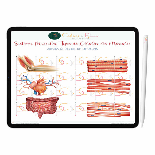 Adesivos Stickers Digital Study Medicina - Sistema Muscular Anatomia do Músculo Humano • iPad Tablet • Download instantâneo • 100% Sustentável