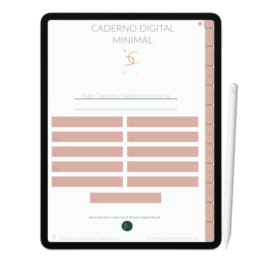 Caderno Digital Minimalista Rosa do Deserto 10 Matérias Study • iPad Tablet • Download instantâneo • 100% Sustentável