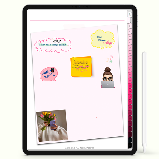 Caderno Digital Blush Linda e Rosa 24 Matérias • Para iPad Tablet Android • Download instantâneo • Sustentável