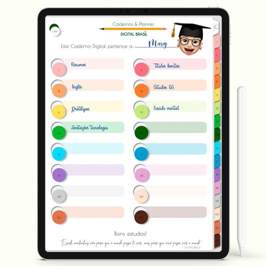 Caderno Digital Colors Student Life 16 Matérias • Para iPad e Tablet Android • Download instantâneo • Sustentável