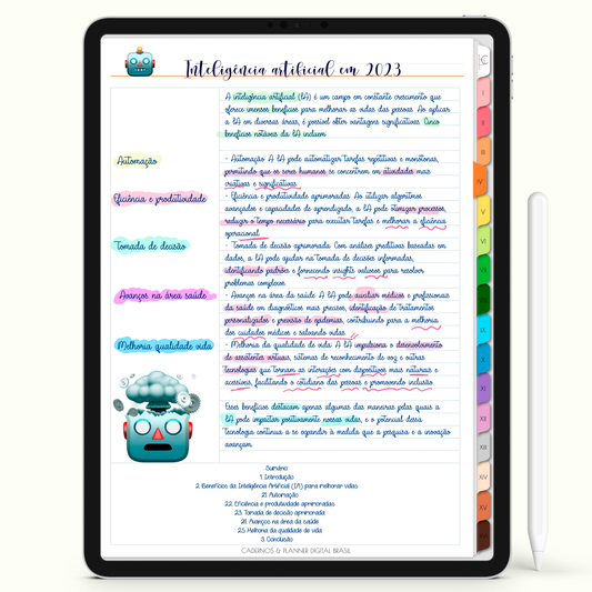 Caderno Digital Colors Belos Resumos 16 Matérias • Para iPad e Tablet Android • Download instantâneo • Sustentável
