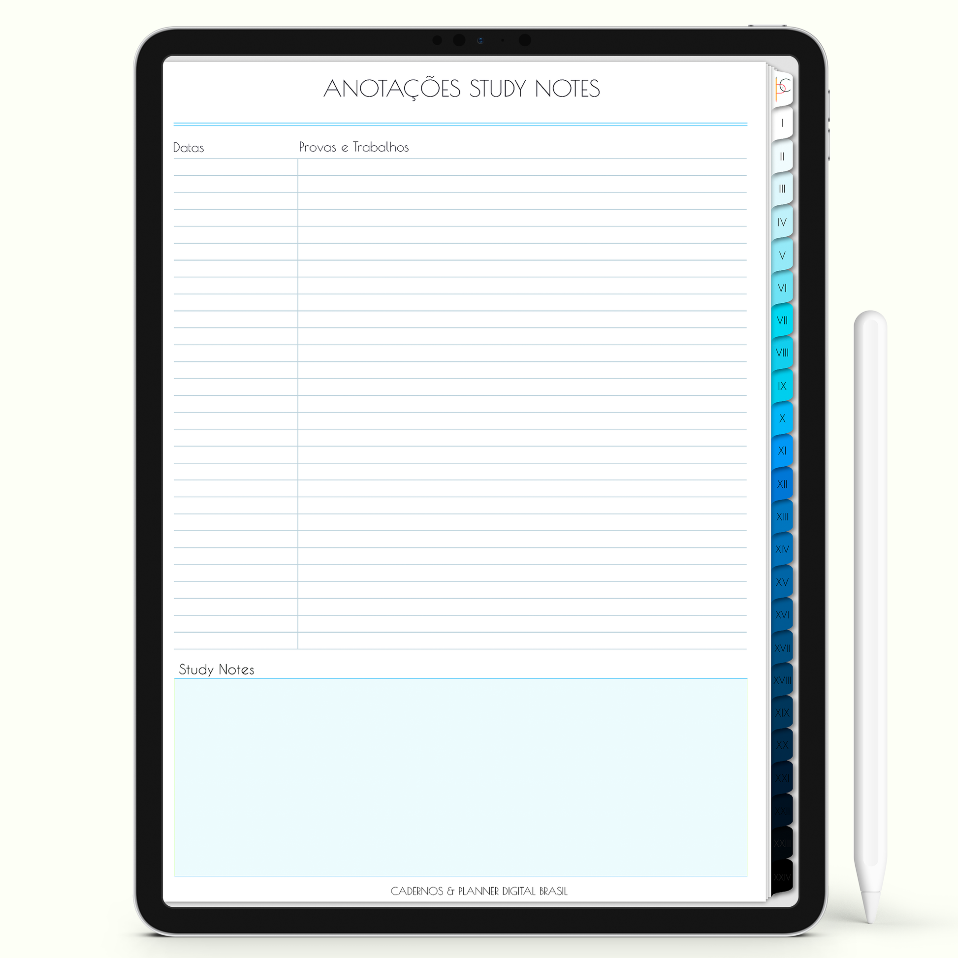 O iPad/Tablet, Apple Pencil/S Pen e aplicativos GoodNotes/Notein não estão incluídos e são vendidos separadamente pelos seus respectivos fabricantes (verificar valores diretamente com os fabricantes).