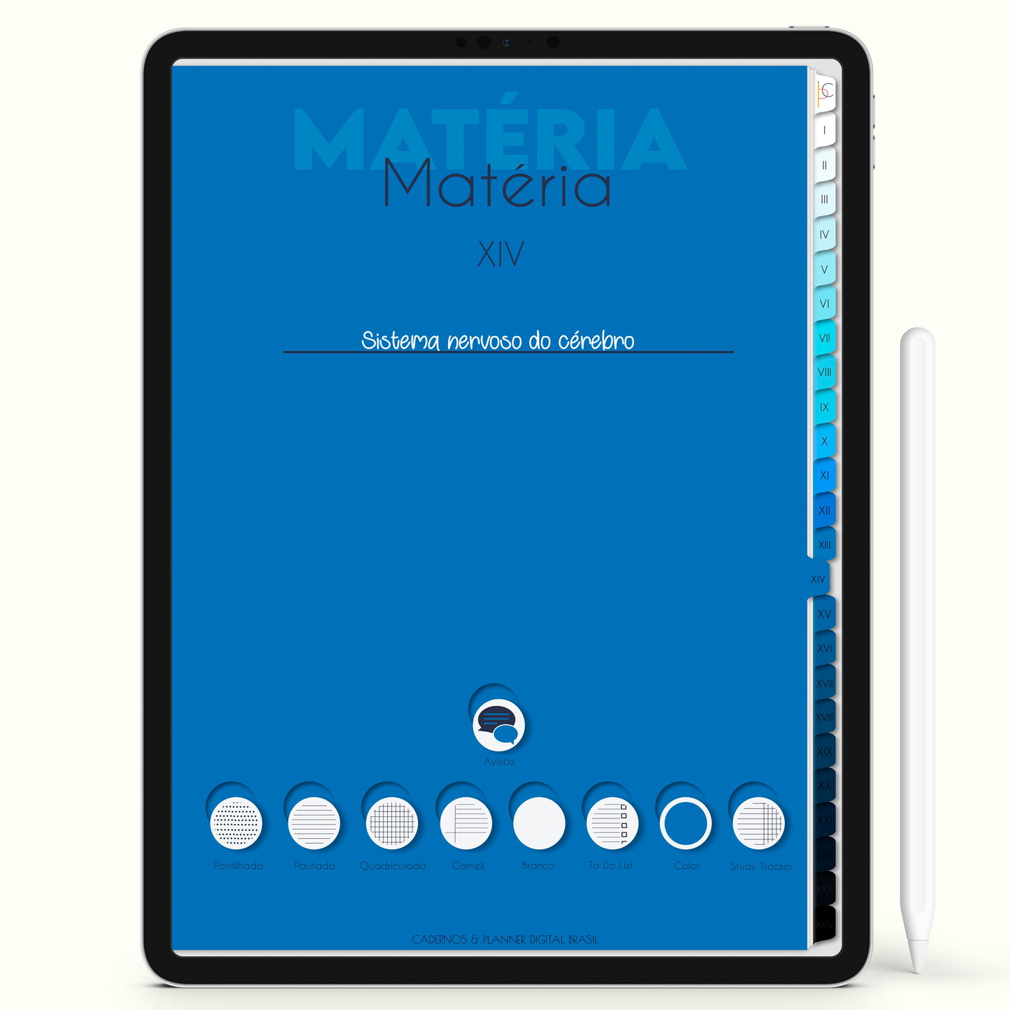 Com recursos inovadores, design elegante e páginas infinitas, o Caderno Digital Coleção Blue 24 matérias vai impulsionar a sua produtividade, criatividade e organização. Prepare-se para uma experiência única, onde a tecnologia se une ao conhecimento.