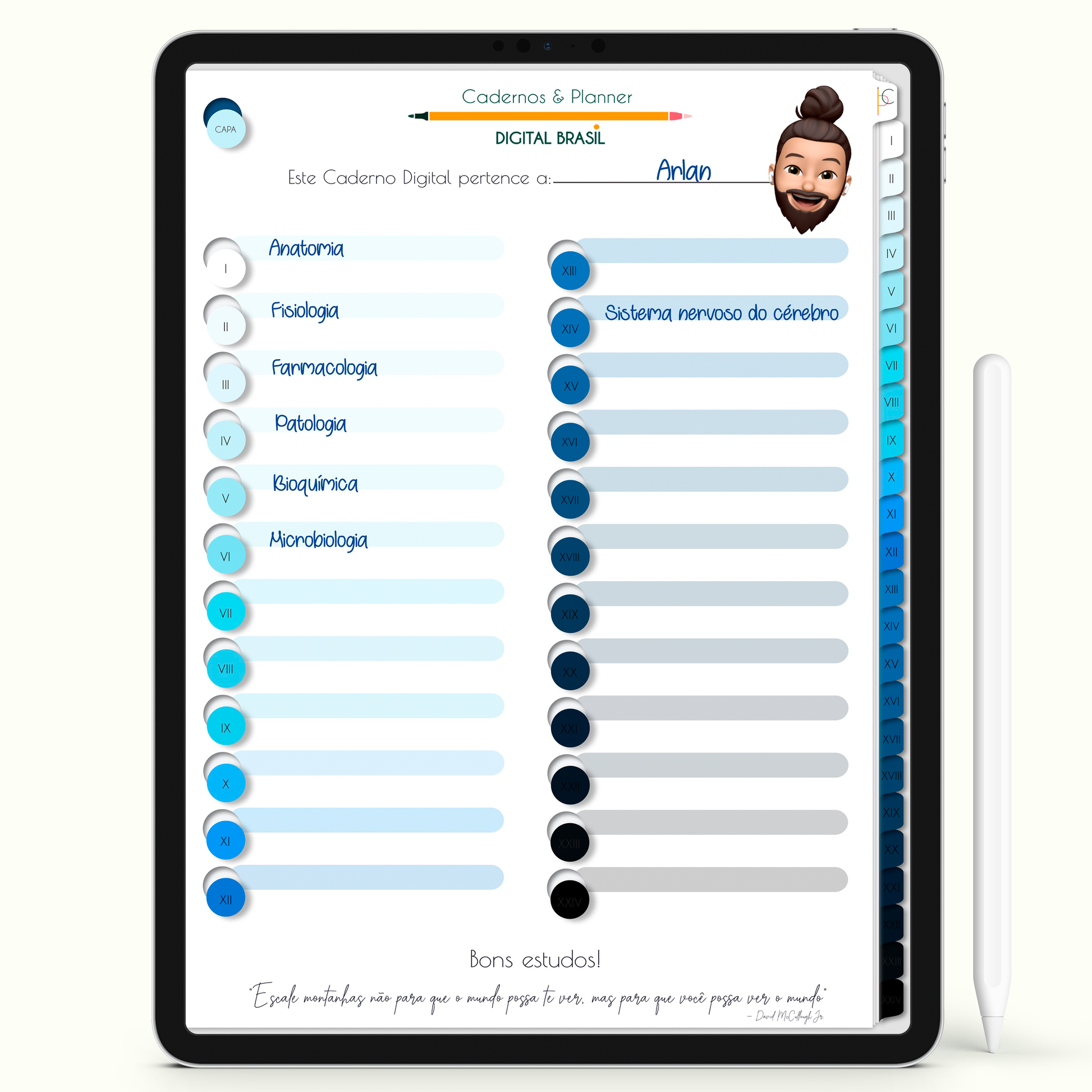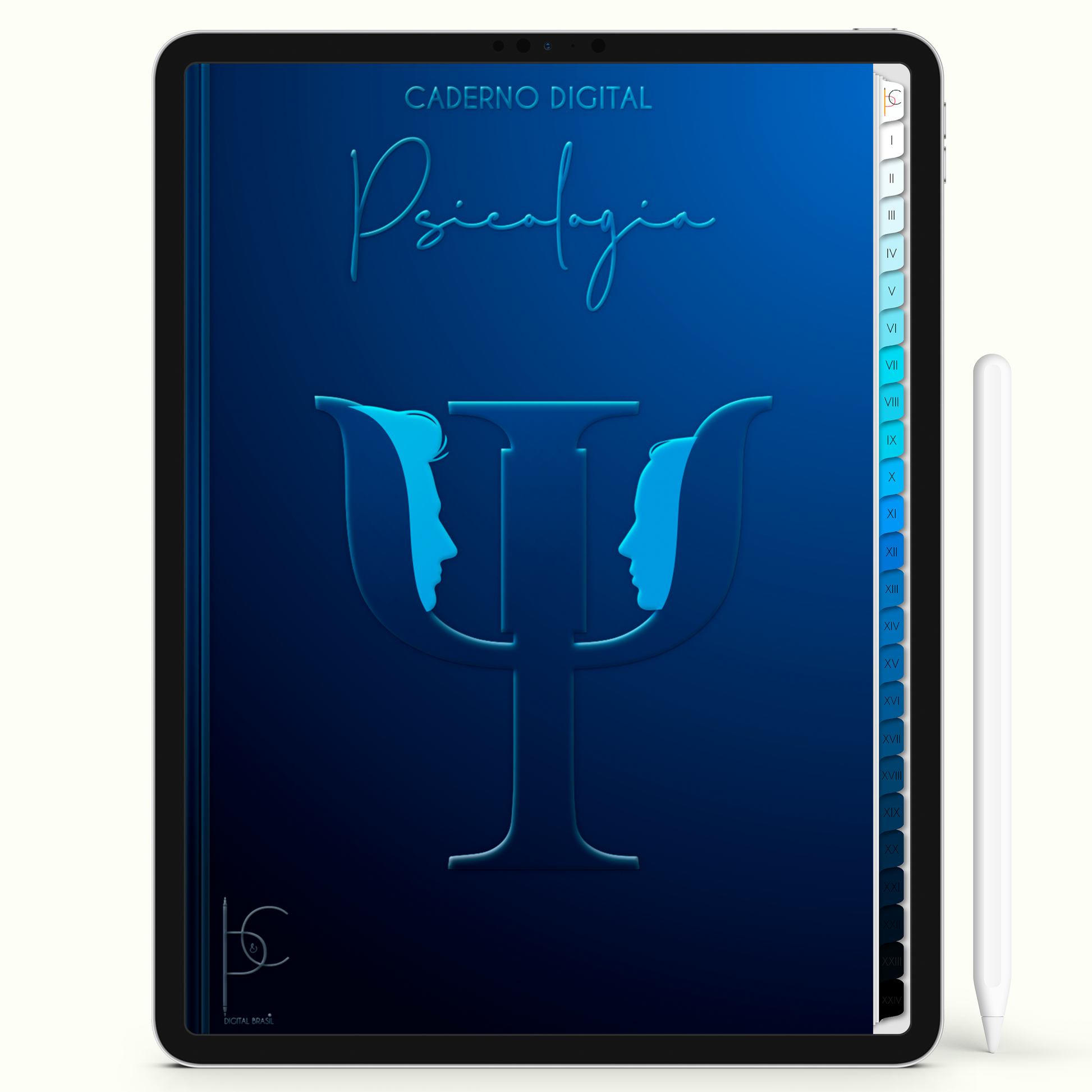 Caderno Digital Blue Psicologia e as Sombras 24 Matérias • Para iPad e Tablet Android • Download instantâneo • Sustentável