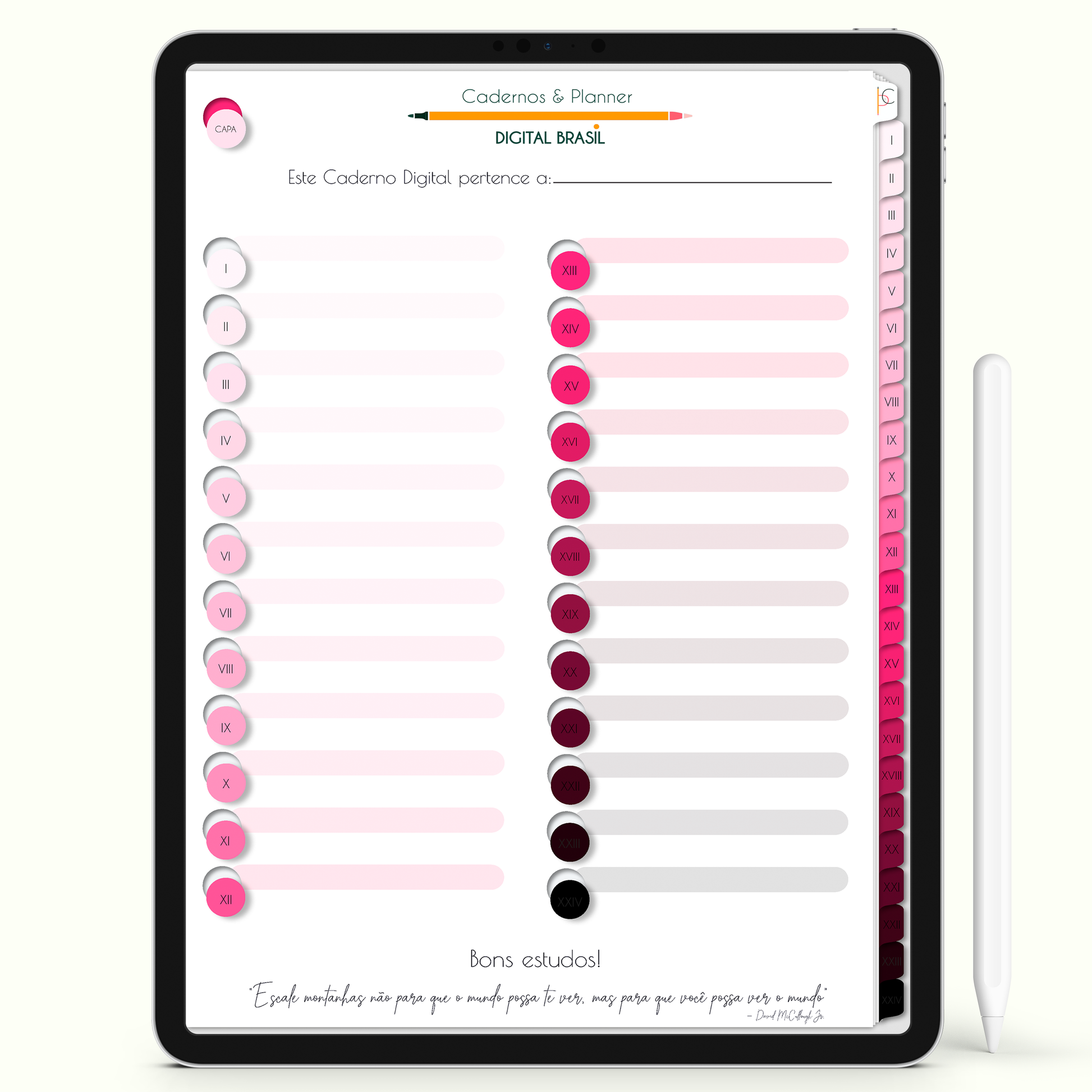 Organize suas anotações, eleve sua produtividade e alcance resultados excepcionais. Com recursos interativos, páginas ilimitadas e um design elegante, você terá tudo o que precisa para brilhar nos estudos.