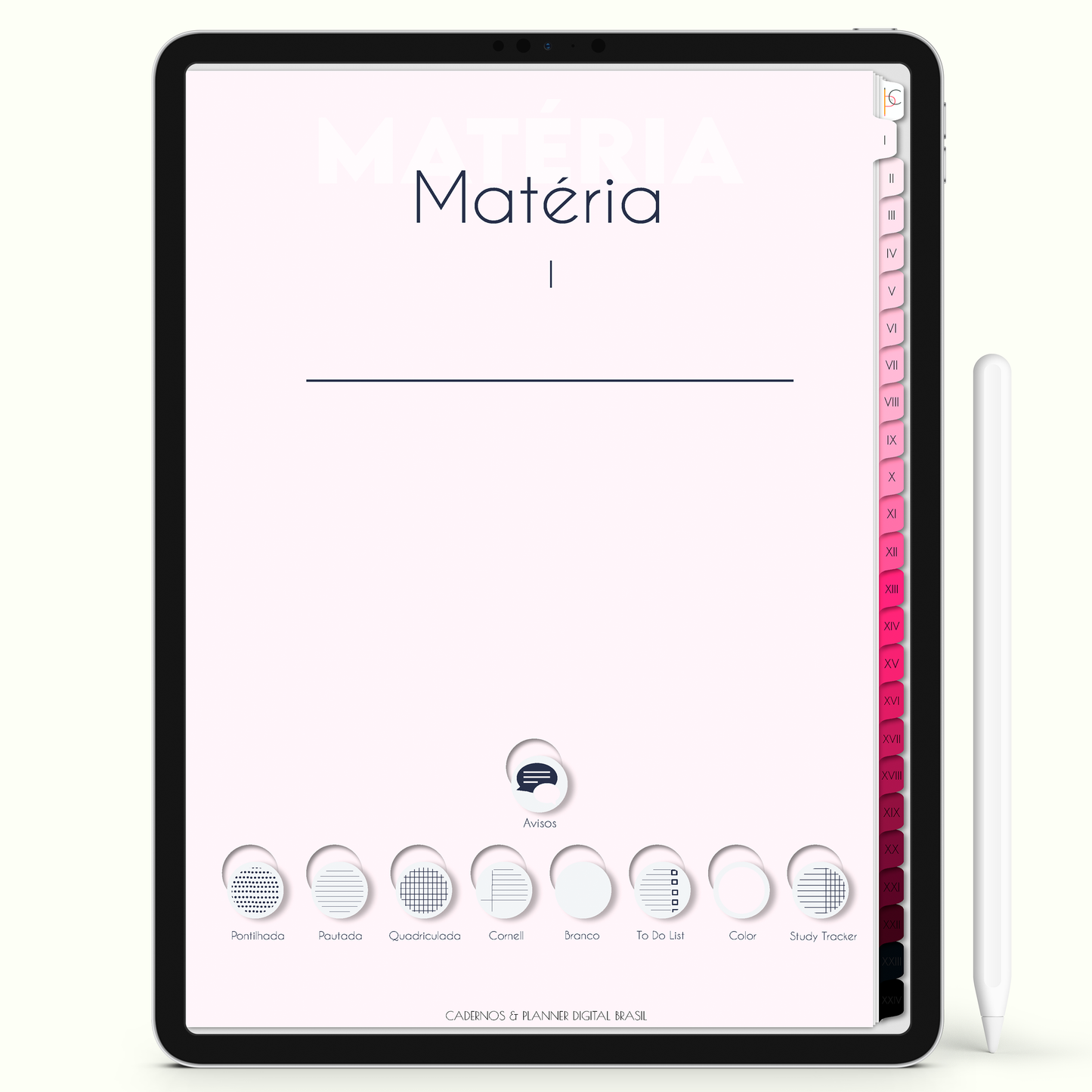 ✓ 9 opções de páginas ilimitadas: de quadro de avisos a páginas pautada, quadriculada, cornell, em branco, to do list study, color e study tracker para você ter liberdade em escrever na que mais lhe agradar. O Caderno Digital Coleção Blush 24 matérias vai além das suas expectativas.