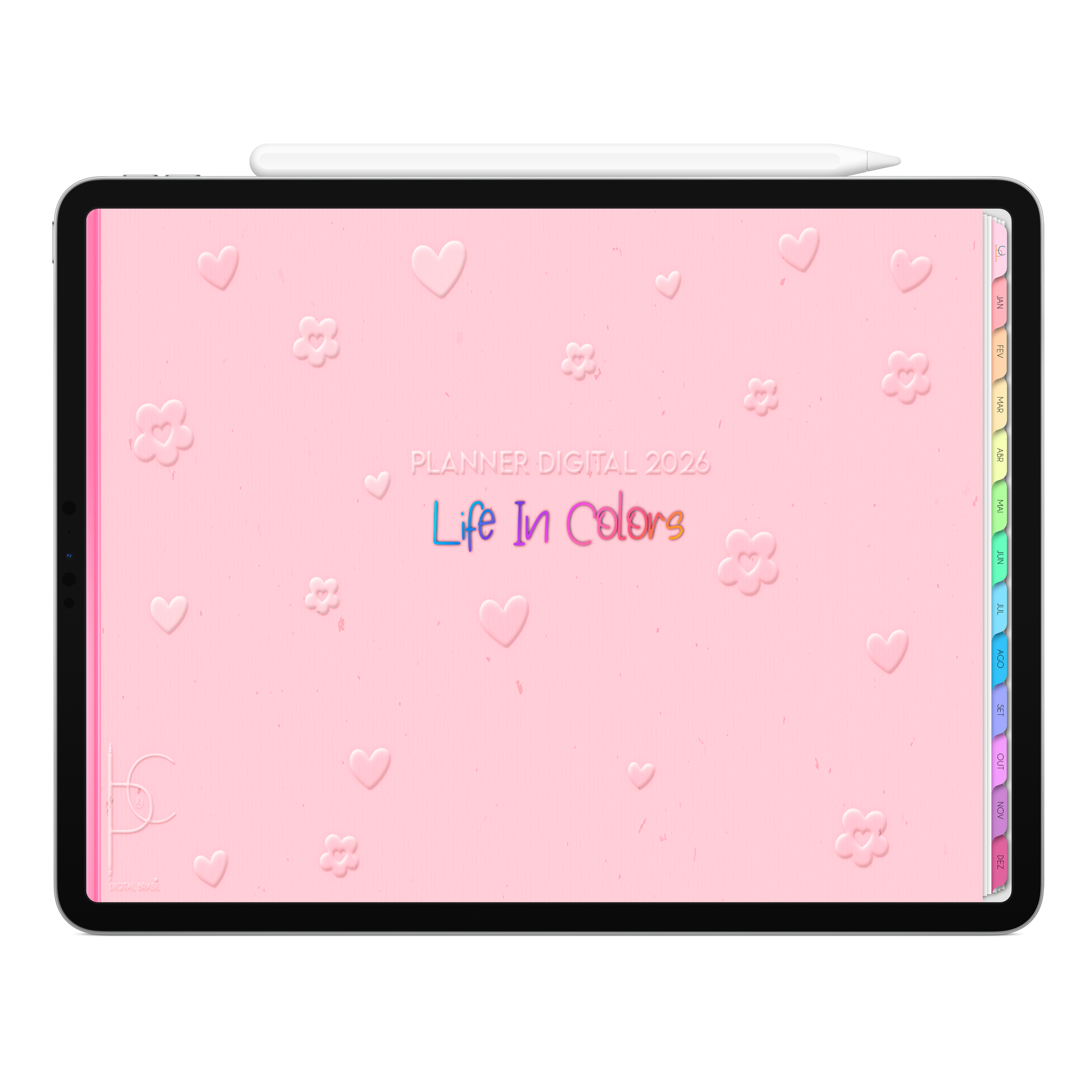 Planner Digital 2026 Horizontal Life In Colors Coração Radiante pt-BR • Para iPad e Tablet Android • Download Imediato